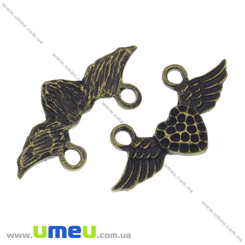 Конектор металевий Серце з крилами, 33х15 мм, Антична бронза (KON-013434) / 1 шт
