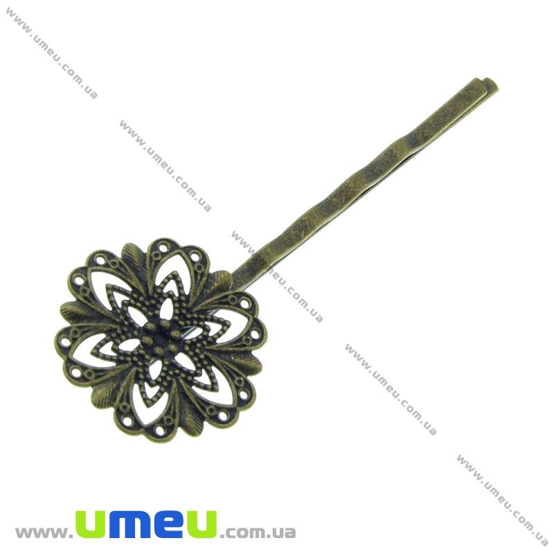 Основа мет. для шпильки невидимка філігранна, 62 мм, Антична бронза (OSN-014588) / 1 шт