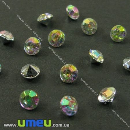 Стрази пластикові, 5 мм, Білі AB, Конус (STR-001471) / 1 уп (10 шт)