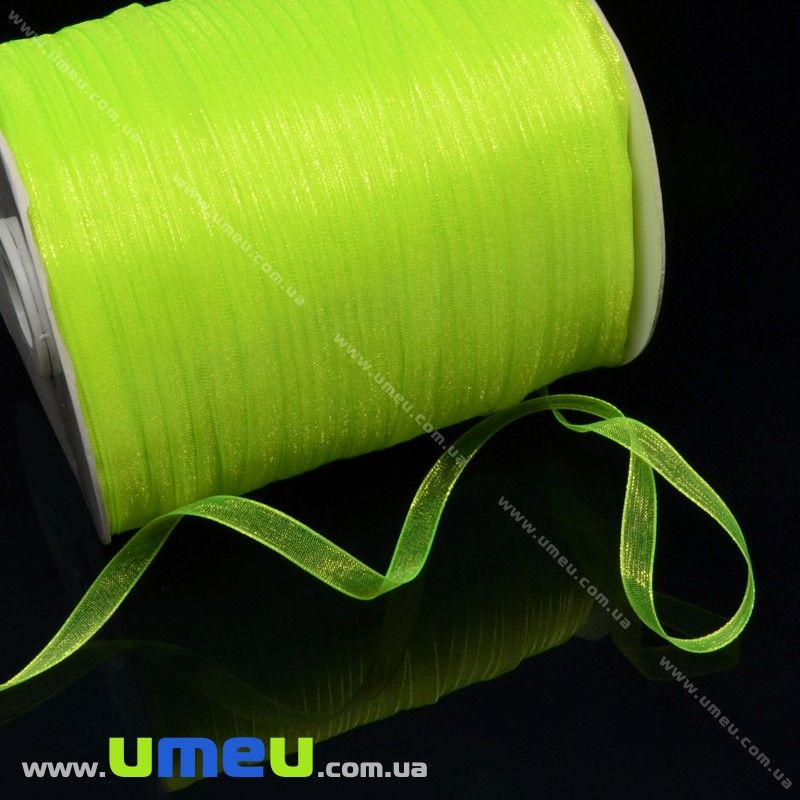 Стрічка з органзи, 6 мм, Салатова яскрава (LEN-015783) /