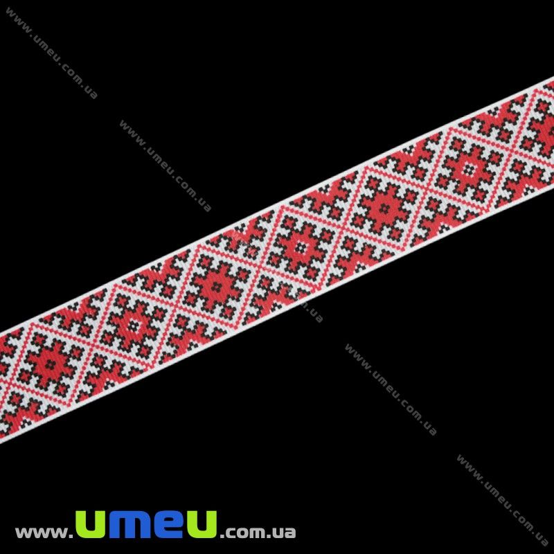 Репсова стрічка з малюнком Орнамент, 25 мм, Червона (LEN-016556) / 1 м