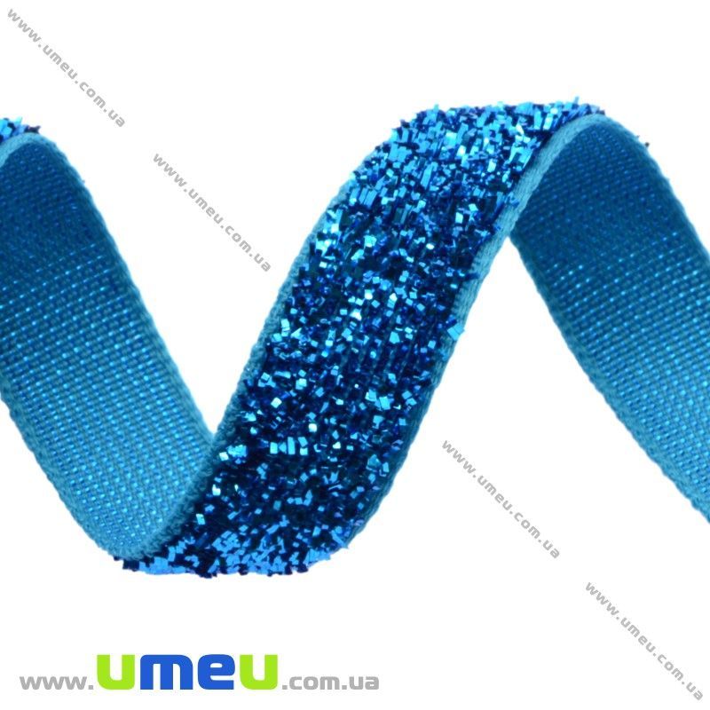 Стрічка оксамитова з люрексом, 10 мм, Блакитна (LEN-017368) / 1 м