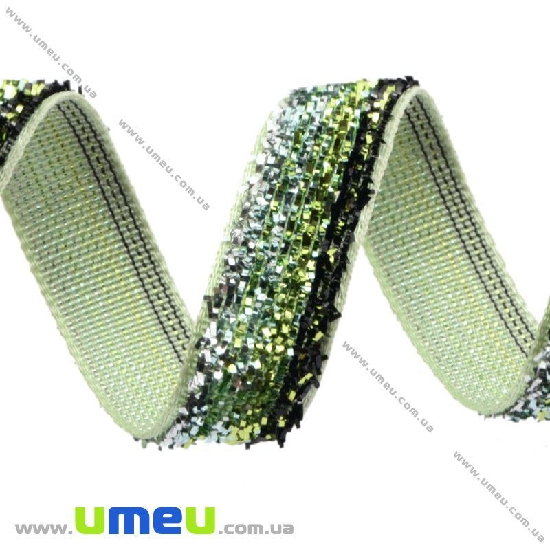 Стрічка оксамитова з люрексом, 10 мм, Зелена (LEN-017380) / 1 м