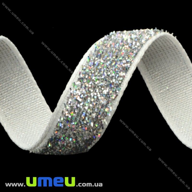 Стрічка оксамитова з люрексом, 10 мм, Срібляста (LEN-017381) / 1 м