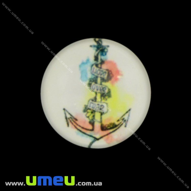 Кабошон скляний з принтом Морський якір, 16 мм, Круглий (KAB-017678) / 1 шт