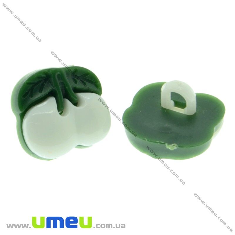 Гудзик пластиковий на ніжці Вишенька, 13х12 мм, Білий (PUG-017795) /