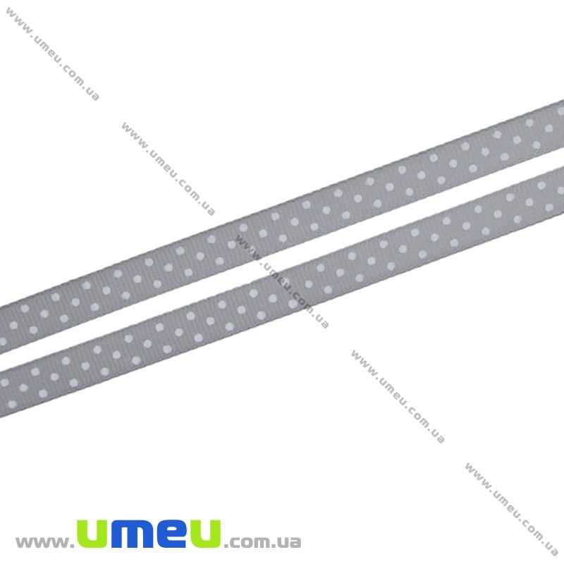 Репсова стрічка в горошок, 10 мм, Сіра (LEN-022434) / 1 м