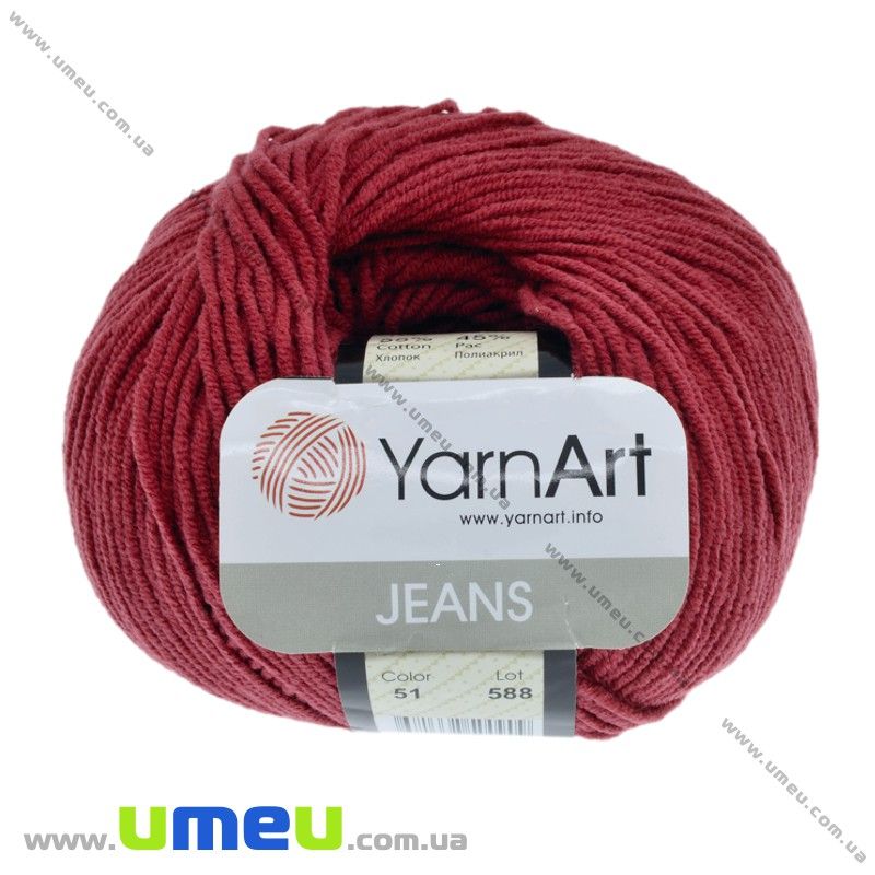 Пряжа YarnArt Jeans 50 г, 160 м, Червона темна 51 (YAR-025305) / 1 моток