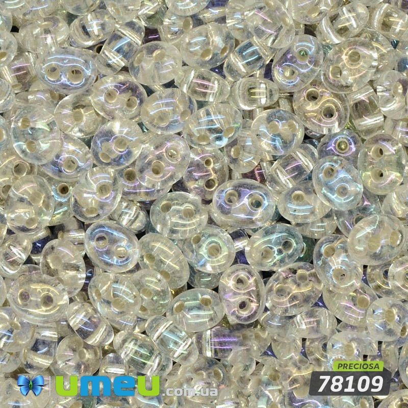 Бісер чеський Twin (Твін) №78109, 2,5х5 мм, Сріблястий блискучий райдужний (BIS-026276) / 1 уп (5 г)