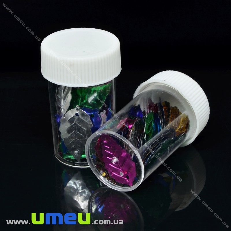 Паєтки Китай в баночці Листочки, 24х13 мм, Різнокольорові, 5 г (PAI-027035) / 1 шт