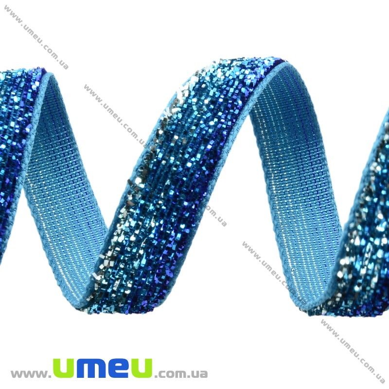 Стрічка оксамитова з люрексом, 10 мм, Синя (LEN-027255) / 1 м
