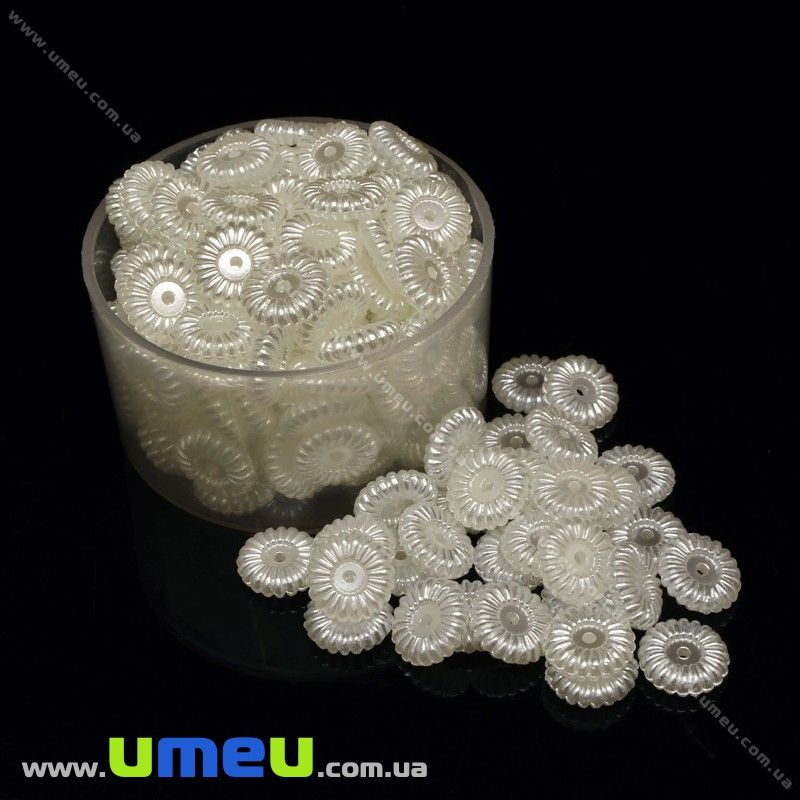 Намистина пластикова Квітка Перли, 10х3 мм, Біла (BUS-028836) / 1 шт