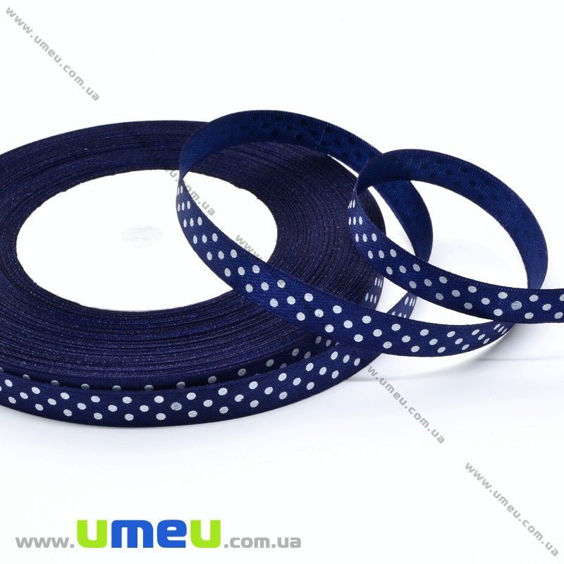 Атласна стрічка в горошок, 10 мм, Синя темна (LEN-029791) / 1 м