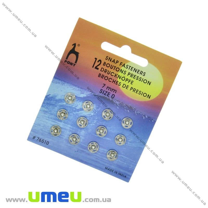 Кнопки пришивні металеві PONY, Срібло, 7 мм (SEW-030159) / 1 набор