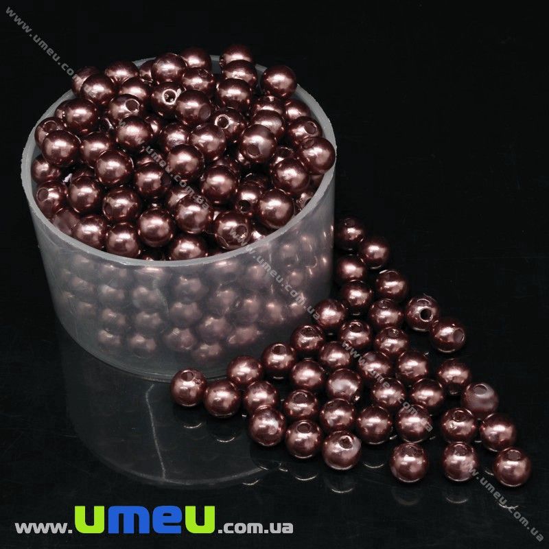 Намистина пластикова Кругла Перли, 6 мм, Коричнева (BUS-031656) / 1 уп (20 шт)