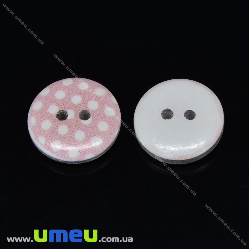 Гудзик дерев'яний Круглий в горошок, 15 мм, Персиковий (PUG-032915) /