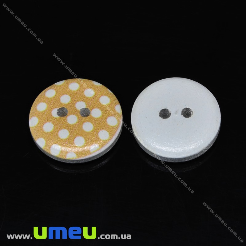 Гудзик дерев'яний Круглий в горошок, 15 мм, Помаранчевий (PUG-032916) /