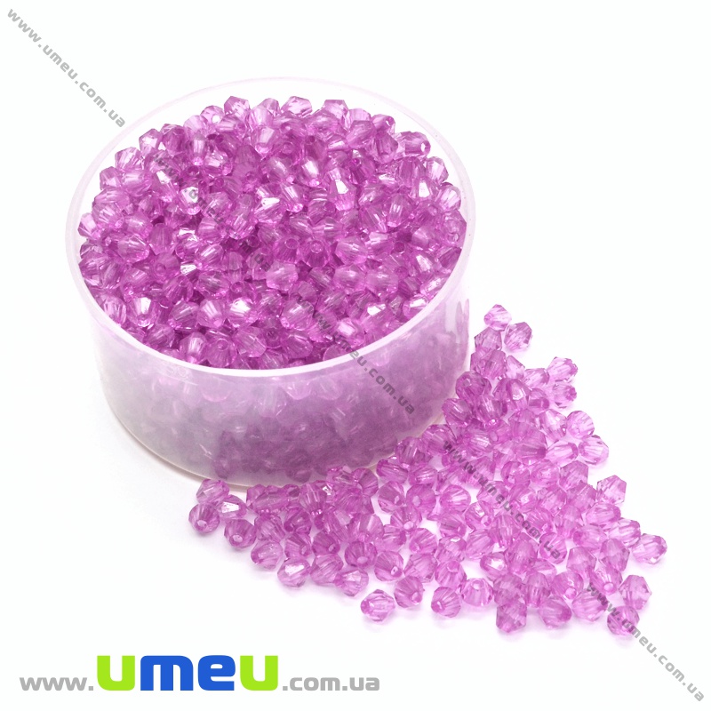 Намистина акрилова Біконус, 4х4 мм, Бузкова (BUS-035052) / 1 уп (5 г)