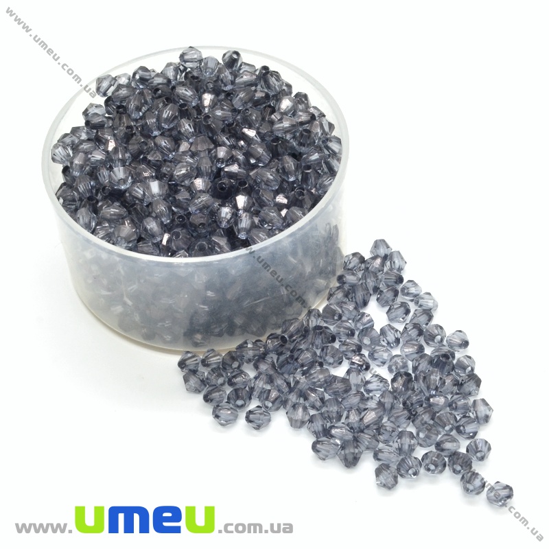 Намистина акрилова Біконус, 4х4 мм, Сіра (BUS-035053) / 1 уп (5 г)