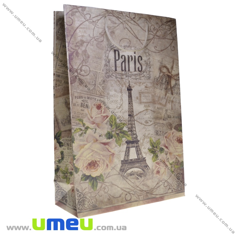 Подарунковий пакет з крафт паперу, 44х30х12 см, Париж (UPK-035654) / 1 шт