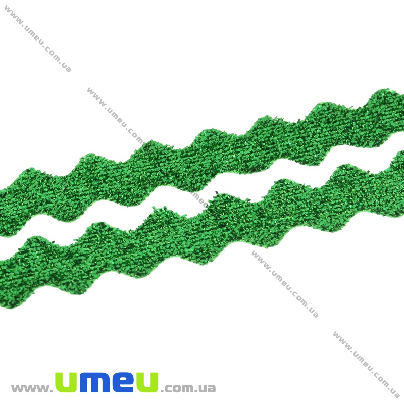 Стрічка оксамитова з люрексом зиґзаґ, 10 мм, Зелена (LEN-035838) / 1 м