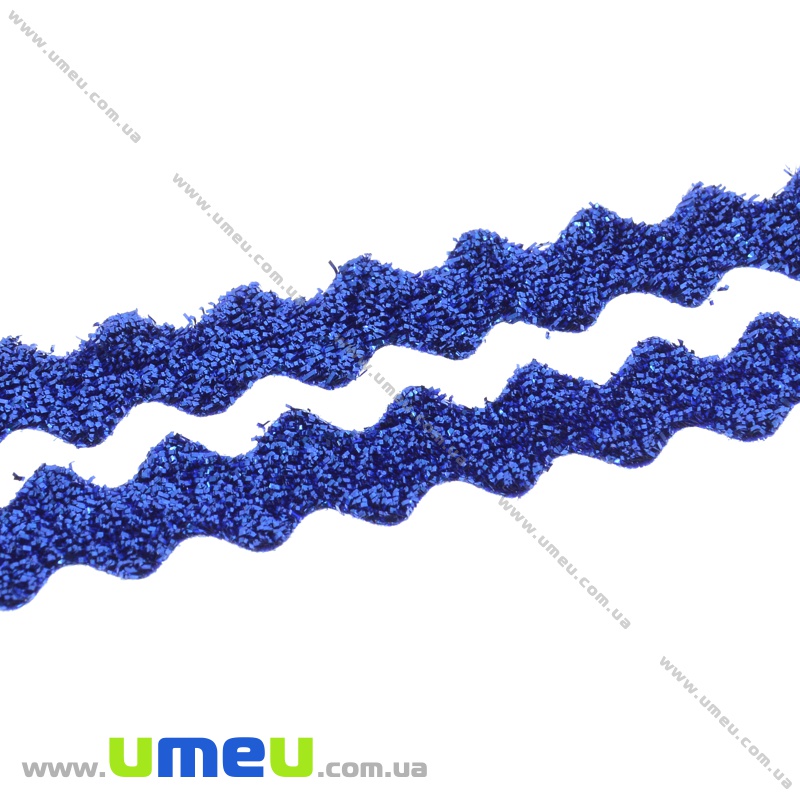 Стрічка оксамитова з люрексом зиґзаґ, 10 мм, Синя (LEN-035839) / 1 м