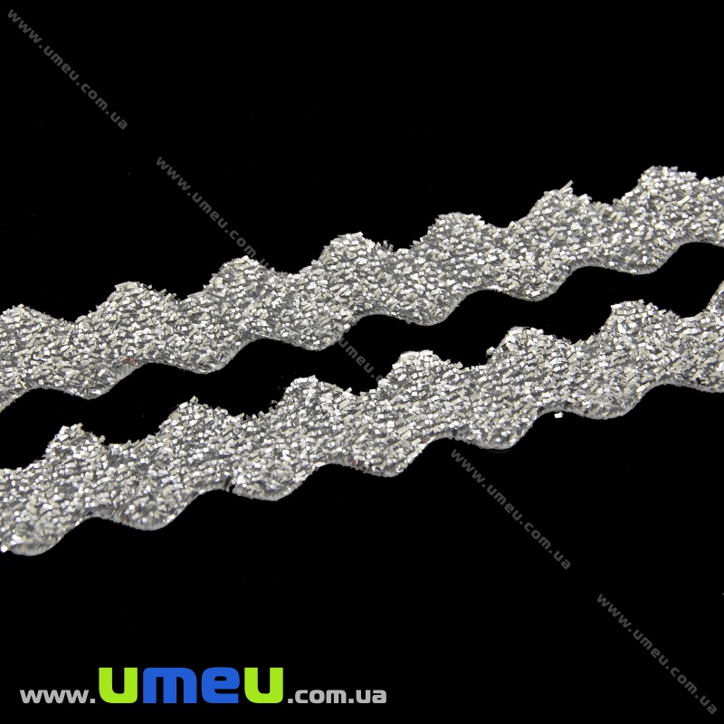 Стрічка оксамитова з люрексом зиґзаґ, 10 мм, Срібляста (LEN-035841) / 1 м