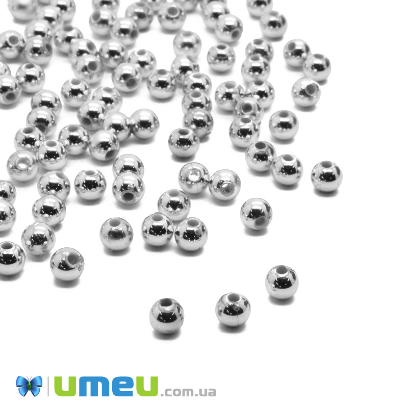 Намистина пластикова Кругла, 4 мм, Срібляста (BUS-003606) /