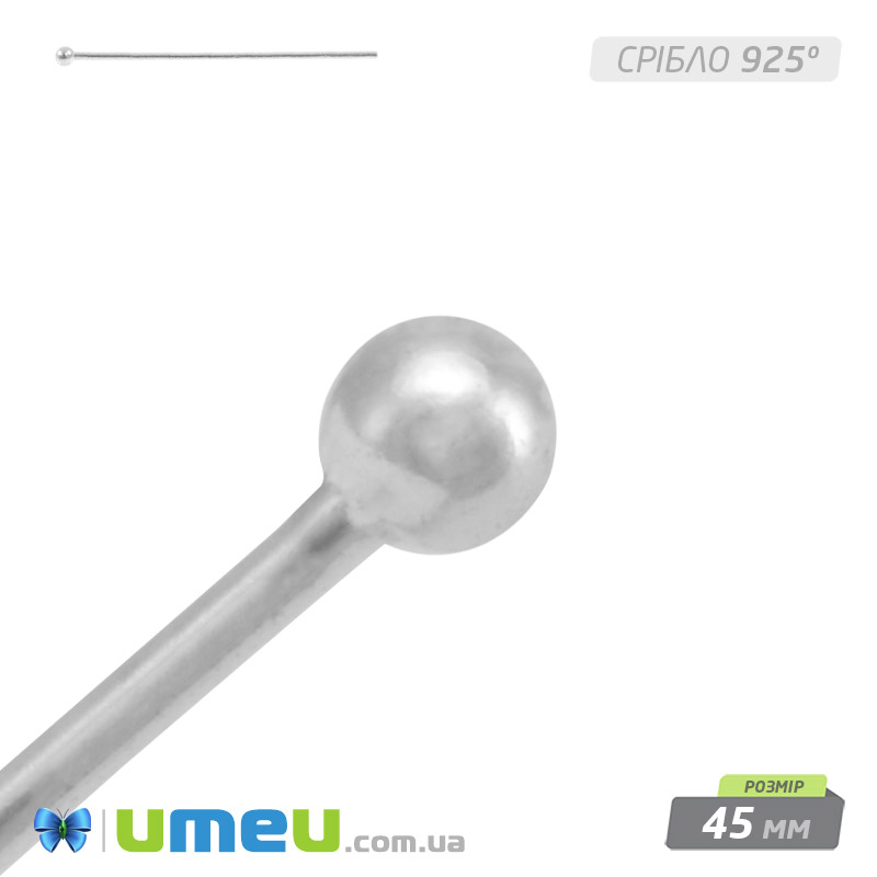 Гвоздик з кулькою Срібло (925 проба), 45 мм, 0,6 мм (SER-036379) / 1 шт