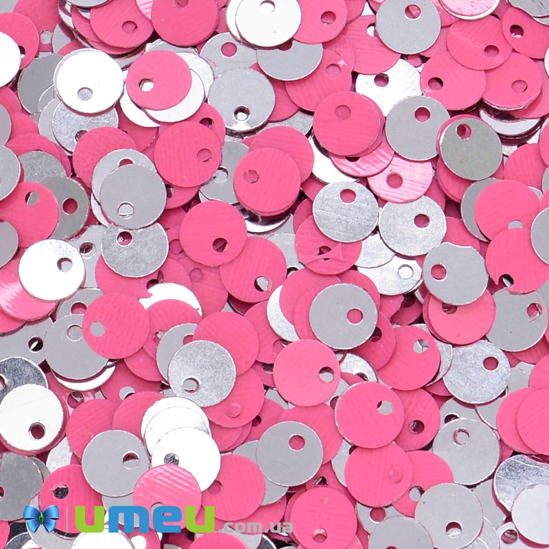 Паєтки Індія круглі плоскі (зміщений отвір), 5 мм, Серебристо-рожеві (PAI-037440) / 1 уп (5 г)