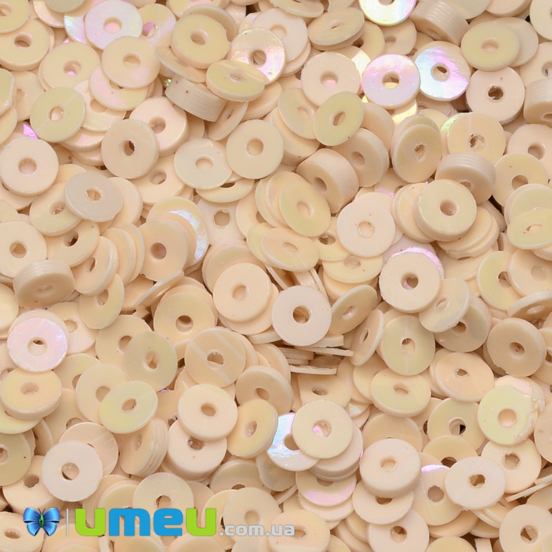 Паєтки Індія круглі плоскі, 4 мм, Персикові АВ (PAI-037601) / 1 уп (5 г)