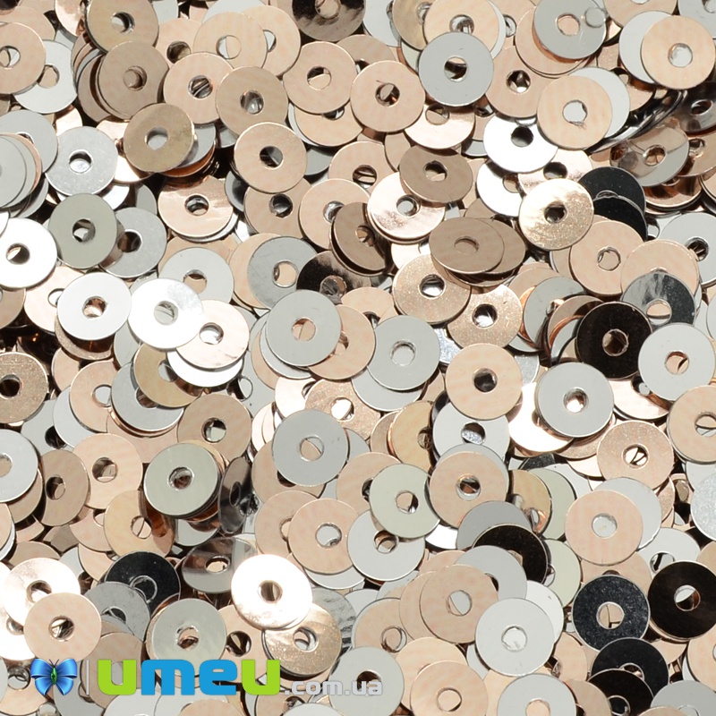 Паєтки Індія круглі плоскі, 4 мм, Серебристо-бежеві (PAI-037625) /