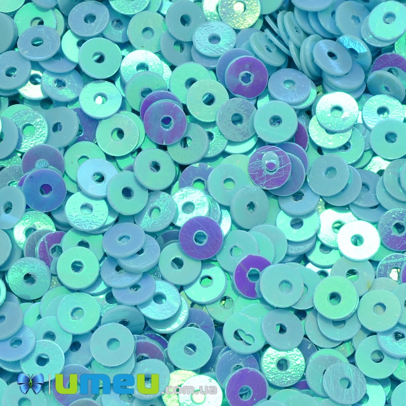 Паєтки Індія круглі плоскі, 4 мм, Блакитні (PAI-037636) / 1 уп (5 г)