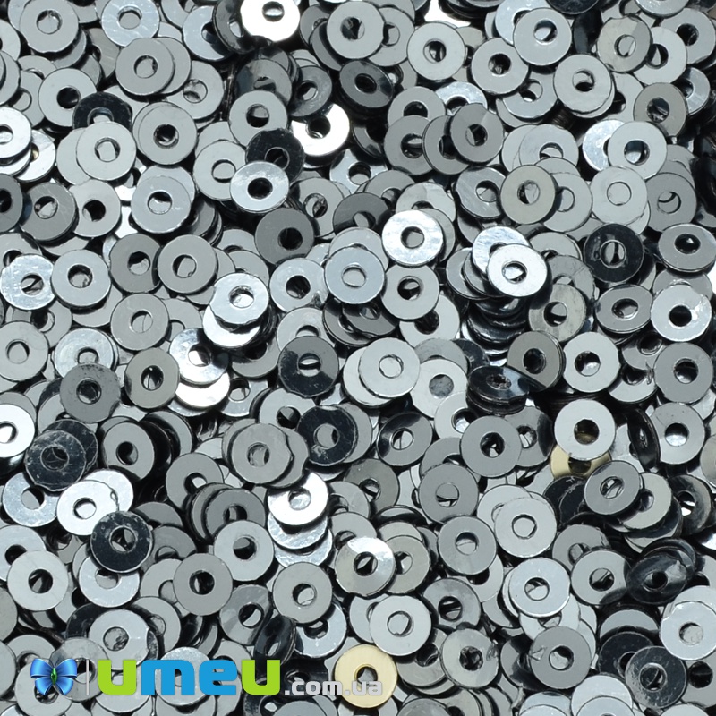 Паєтки Індія круглі плоскі, 2,5 мм, Мокрий асфальт (PAI-037637) / 1 уп (5 г)