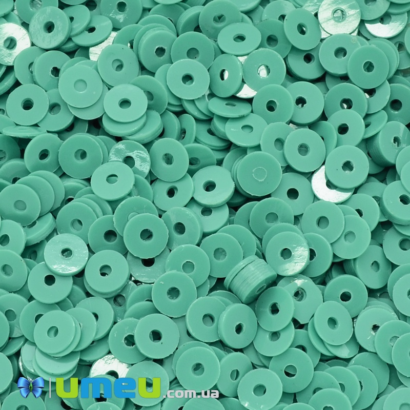 Паєтки Індія круглі плоскі, 4 мм, Бірюзові (PAI-037649) / 1 уп (5 г)