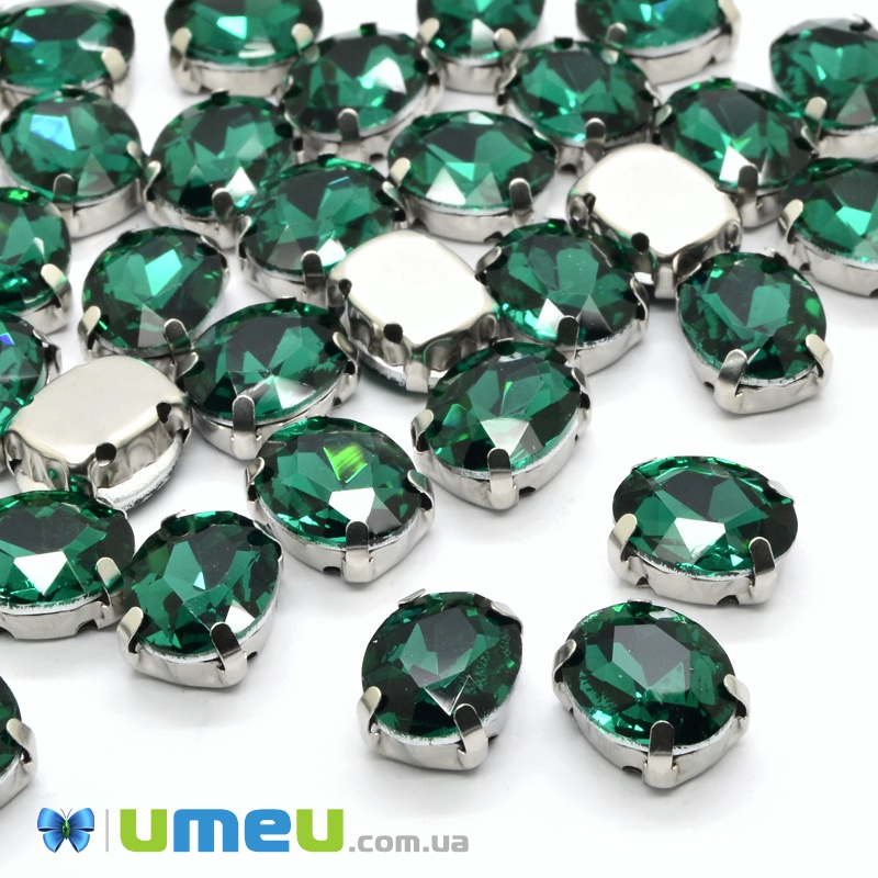 Шатон овальний 10х8 мм, Темне срібло, Смарагдовий (KAB-037975) / 1 шт