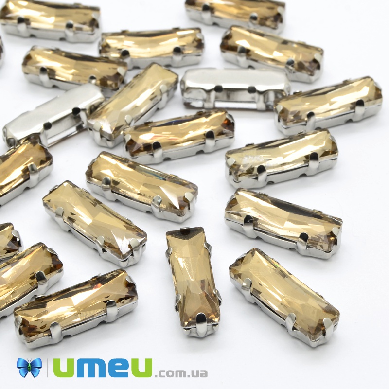 Шатон прямокутний 15х5 мм, Темне срібло, Бежевий (KAB-038003) /