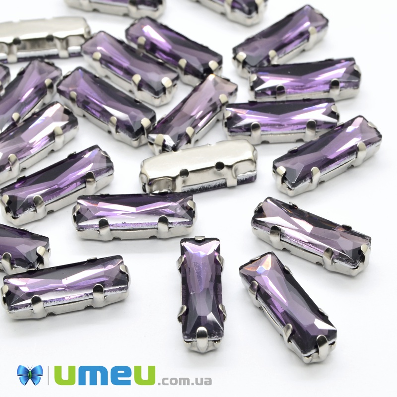 Шатон прямокутний 15х5 мм, Темне срібло, Фіолетовий (KAB-038007) /
