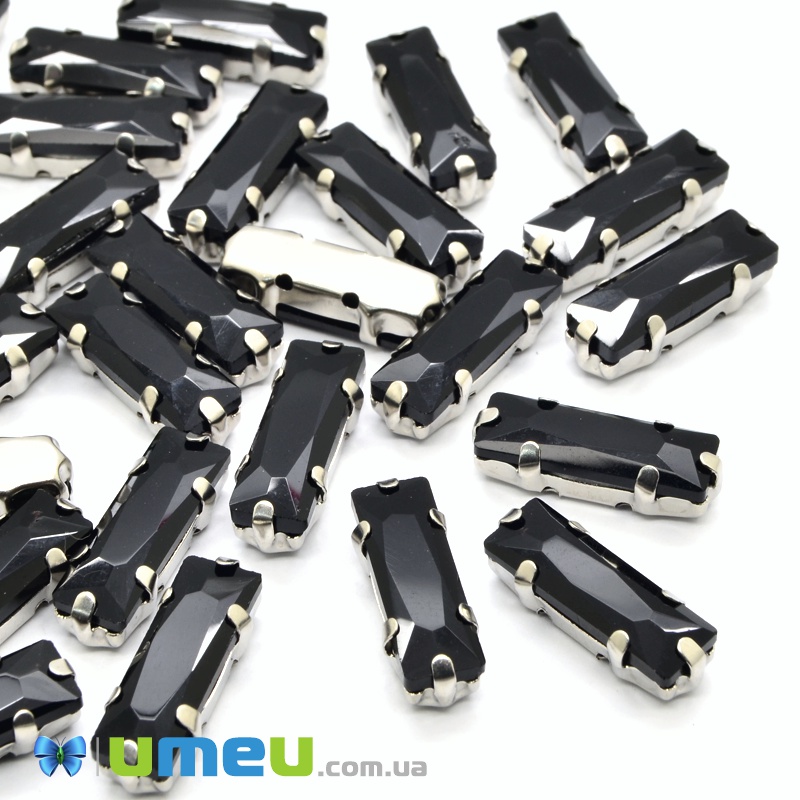 Шатон прямокутний 15х5 мм, Темне срібло, Чорний (KAB-038012) /