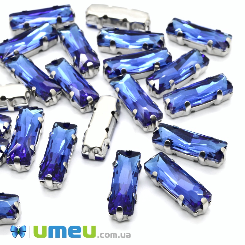 Шатон прямокутний 15х5 мм, Темне срібло, Синій (KAB-038014) /