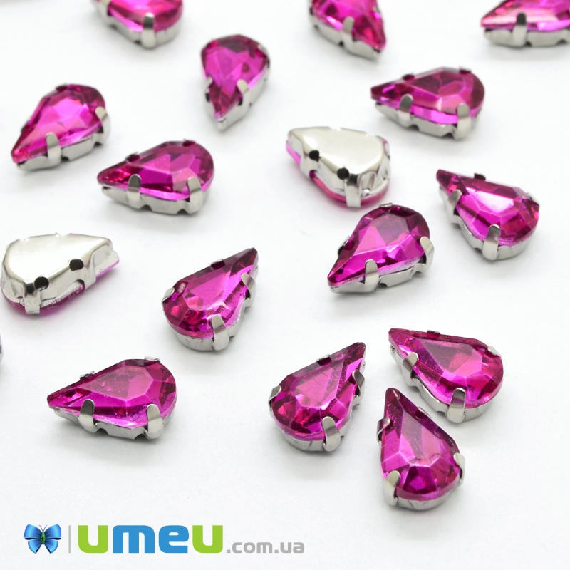 Шатон крапля 10х6 мм, Темне срібло, Малиновий (KAB-038058) / 1 шт