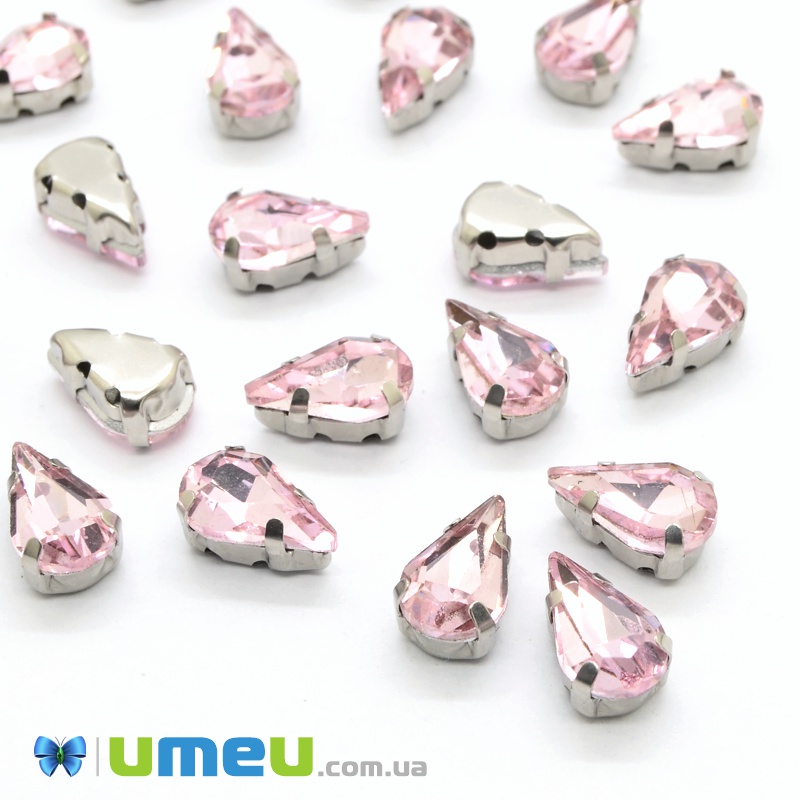 Шатон крапля 10х6 мм, Темне срібло, Рожевий (KAB-038064) / 1 шт