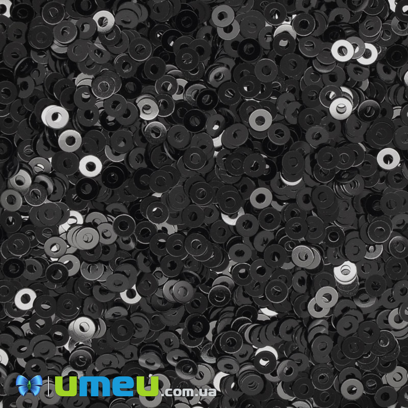 Паєтки Італія круглі плоскі, 2 мм, Чорні №9919 Nero Metal (PAI-039953) / 1 уп (1 г)