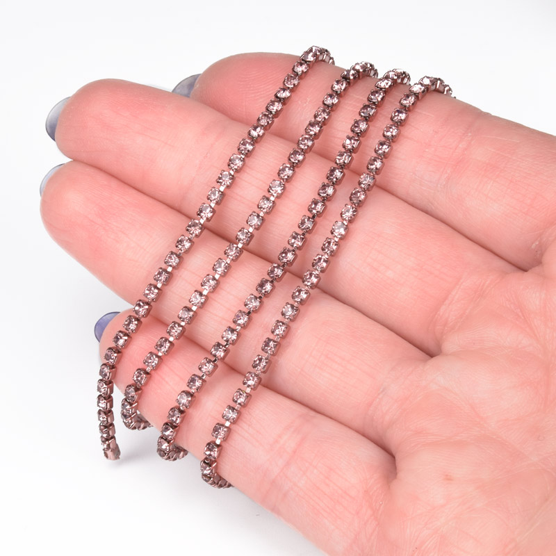 Стразовий ланцюг SS6 - 2,0 мм, Бузковий, Стрази скляні бузкові (ZEP-040474) / 1 м