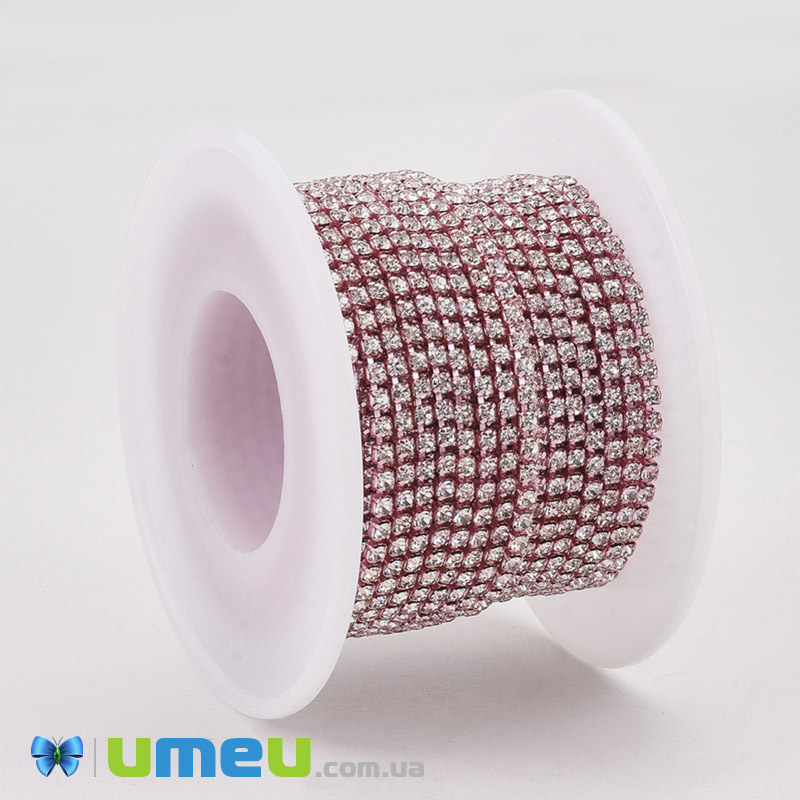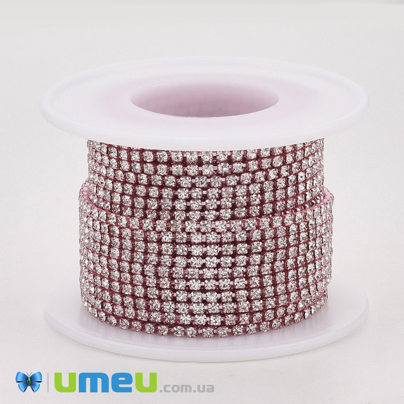Стразовий ланцюг SS6 - 2,0 мм, Рожевий, Стрази скляні білі (ZEP-040484) / 1 м