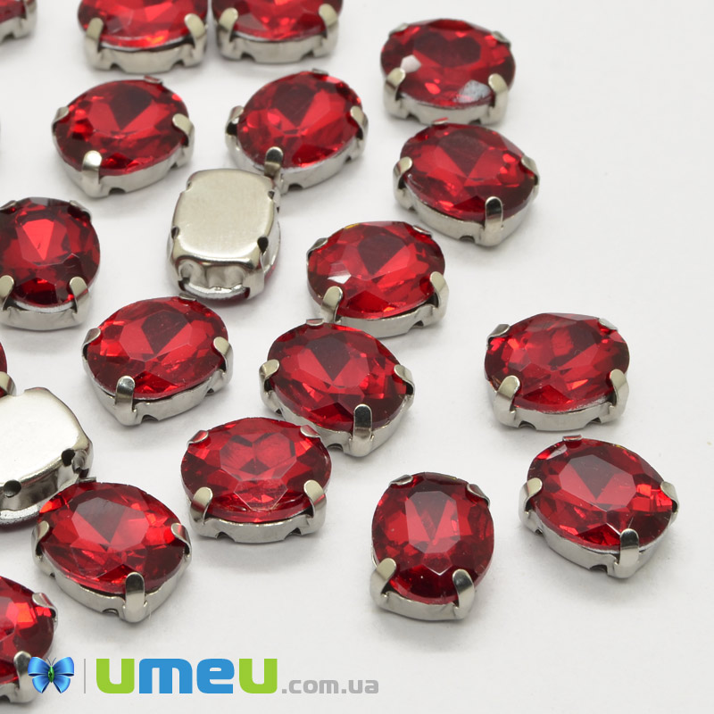 Шатон овальний 10х8 мм, Темне срібло, Червоний (KAB-040637) / 1 шт