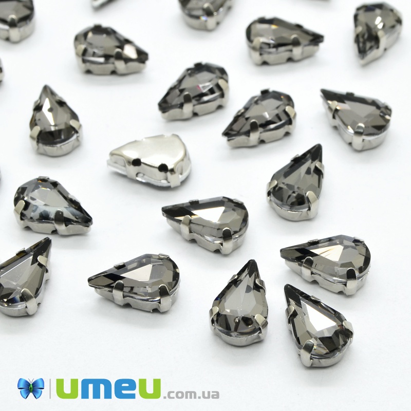 Шатон крапля 13х8 мм, Темне срібло, Сірий (KAB-040675) / 1 шт