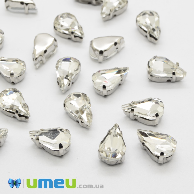 Шатон крапля 13х8 мм, Темне срібло, Білий (KAB-040686) / 1 шт