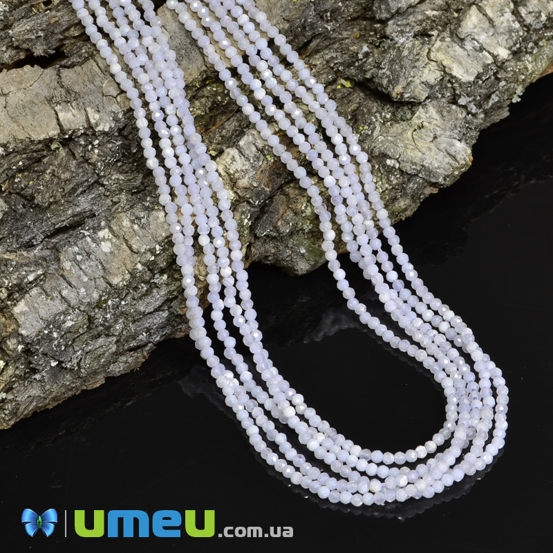 Намистини Агат бузковий, 2 мм, Круглі грановані (BUS-040874) / 1 низка