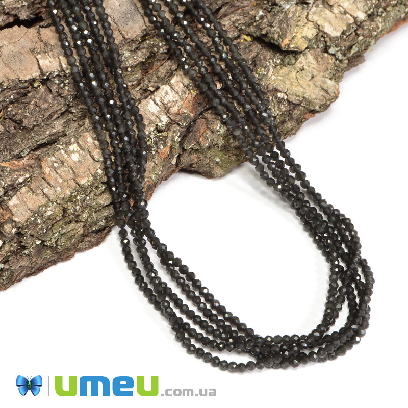 Намистини Обсидіан, Натур. камінь, 2,5 мм, Круглі грановані (BUS-040881) / 1 низка